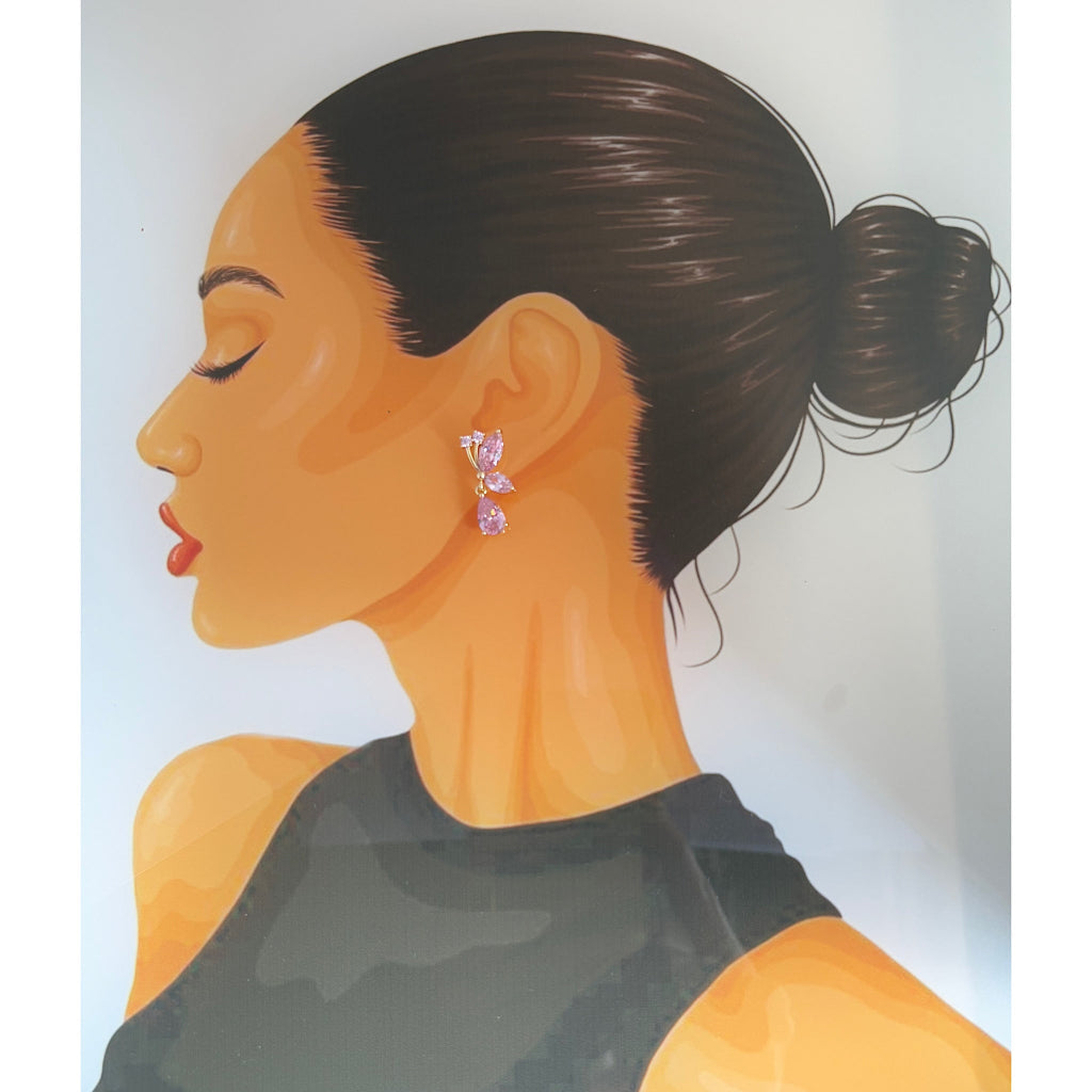 Blush Bloom Drops showcase a sophisticated butterfly design embellished with sparkling crystals, inspired by Korean elegance. Crafted with an anti-tarnish finish, offering a timeless and classy accessory perfect for elevating any look.
