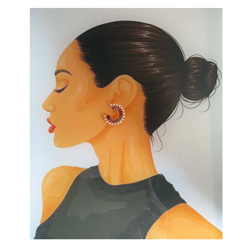 Elevate your festive style with these expertly crafted Red Hoop Studs. Featuring a semi-circular design, they offer a rich, polished look that commands attention. The bold red crystals paired with sparkling American diamonds create a luxurious and eye-catching appeal, perfect for special occasions and celebrations